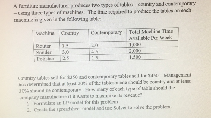 Solved A Furniture Manufacturer Produces Two Types Of Tab